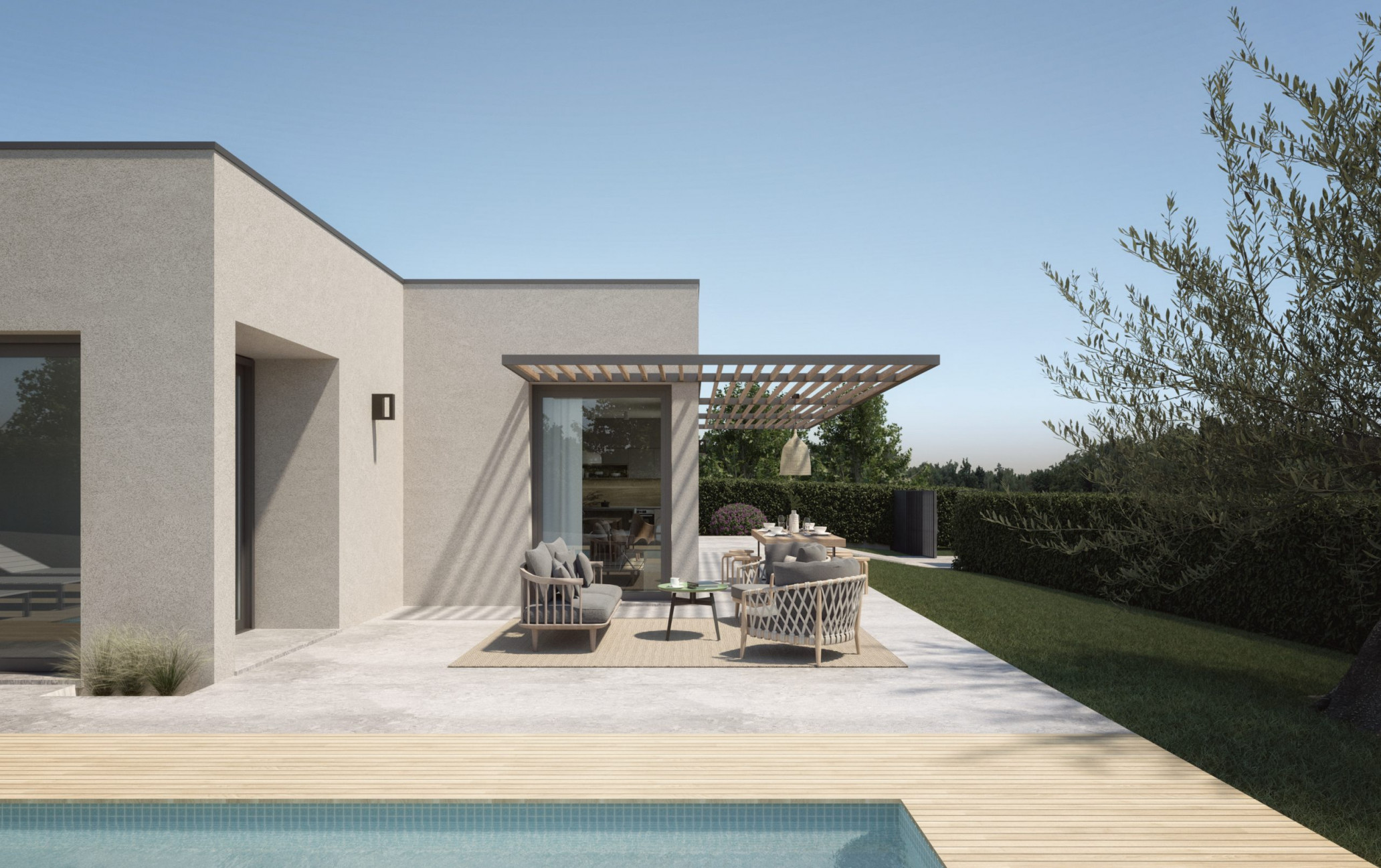 Esto nos lleva a diseñar una vivienda cómoda, en planta baja, donde se prioriza la orientación de las viviendas y la conexión de los espacios interiores con el exterior.