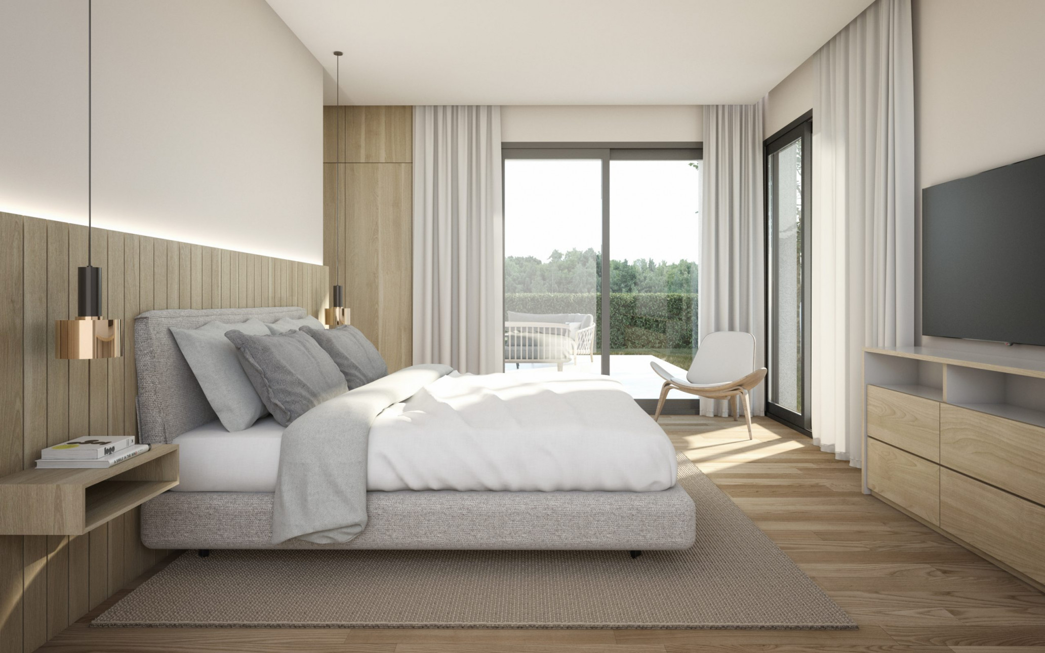 El resto de dormitorios y los baños se sitúan en la parte posterior, favoreciendo así una mayor tranquilidad.